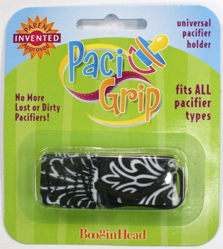 BooginHead PaciGrip, Black, No more lost or dirty pacifiers. PaciGrip universal pacifier holder (formerly BinkiGrip) was created from the same company that brought you SippiGrip in matching colors and patterns. The PaciGrip is made out of washable and durable material with a clasp strong enough to hold against a child's pull but gentle enough not to damage their clothing. Its unique loop attachment is easy to use and compatible with all pacifiers such as Soothie, MAM, Avent and more. All BooginHead products are parent invented, award winning and thoroughly tested for safety.